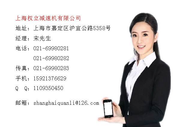 公司名稱:上海權(quán)立減速機有限公司 公司地址:上海市嘉定區(qū)滬宜公路5358號 電話:021-69980281 021-69980282 傳真:021-69980283 手機:15921376629 網(wǎng)址: